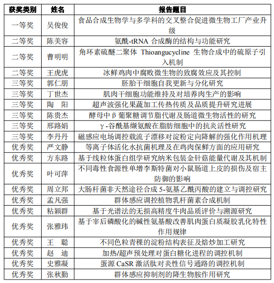 2021年1月22日,食品科技成人视频 举办2020年度工作总结暨学术年会,21位青年教师在学术年会上做了精彩的报告。成人视频 评委组从报告内容、演讲表现、多媒体制作等方面进行提问并现场评分,评选出一等奖1名,二等奖3名,三等奖6名,优秀奖11名。现将青年教师学术报告获奖人员名单公示如下:
